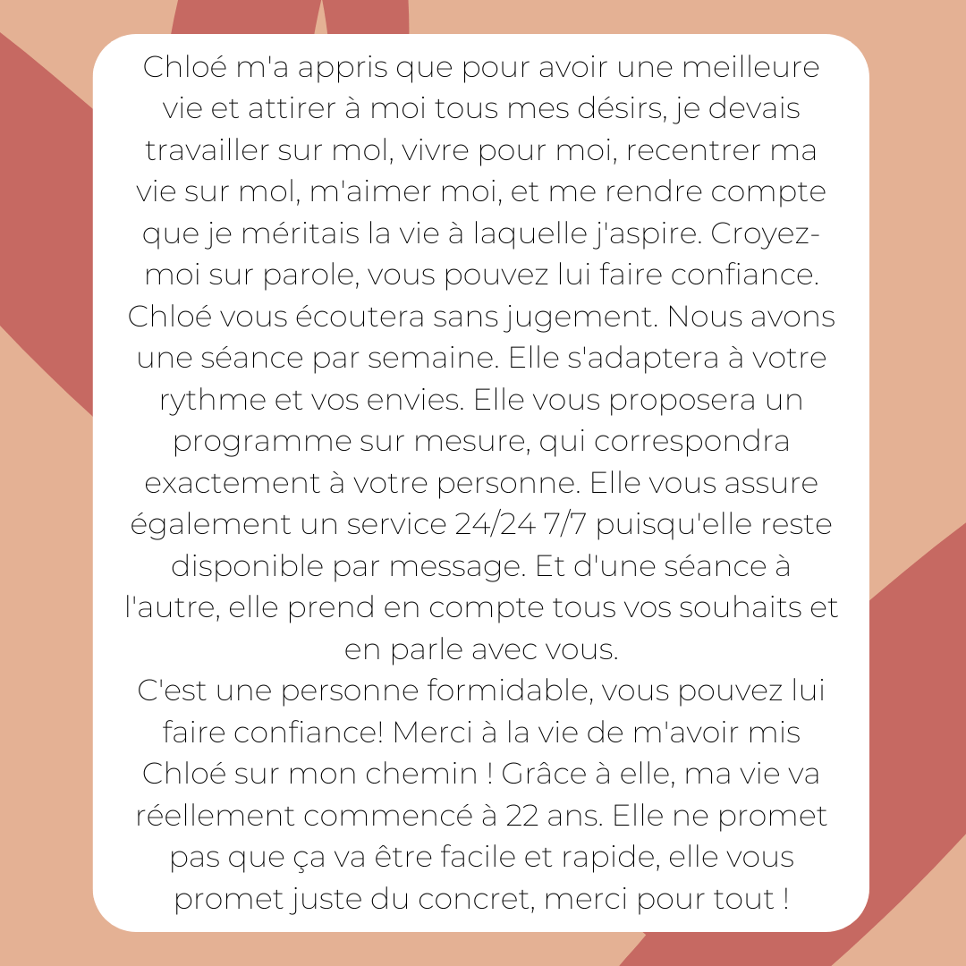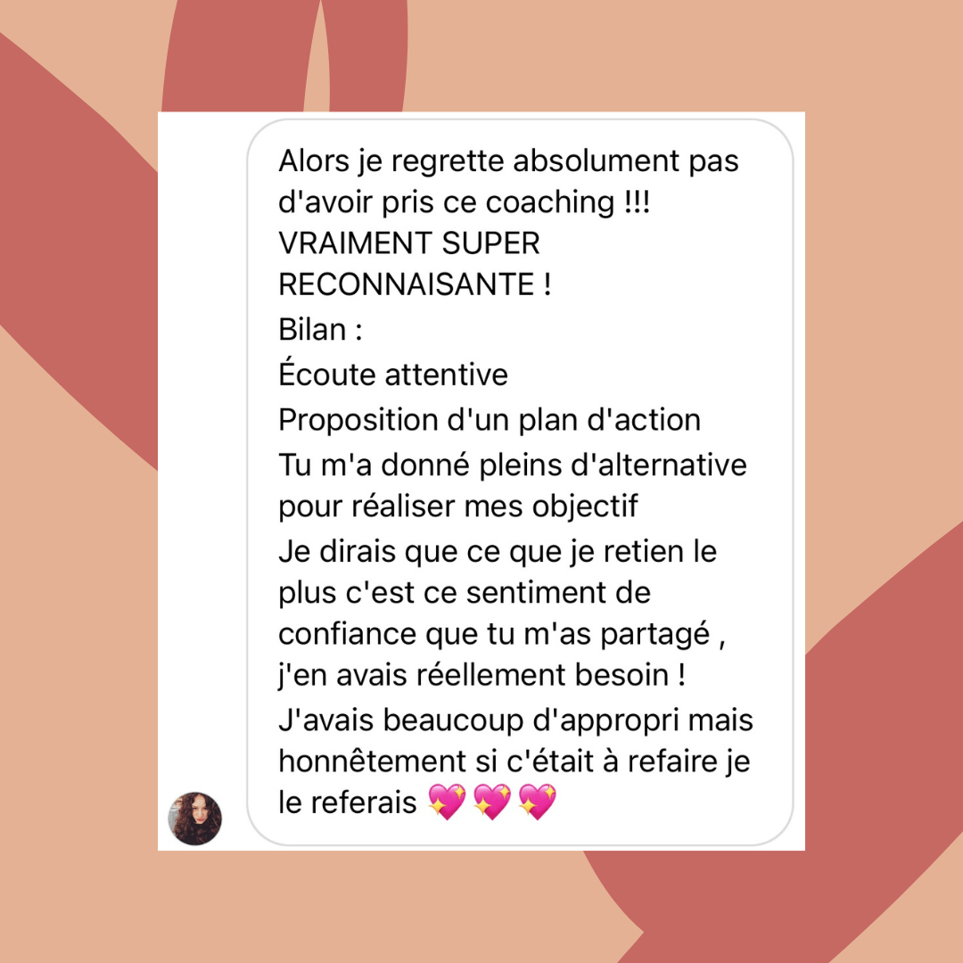Tu verras forcément des résultats, ta vie prendra forcément un nouveau tournant ! Ça a marché pour moi, ça a marché pour celles que j'ai accompagné, alors ça marchera pour toi. Si tu es prête et déterminée à changer et que tu veux reprendre le contrôle de ta vie alors fonce !