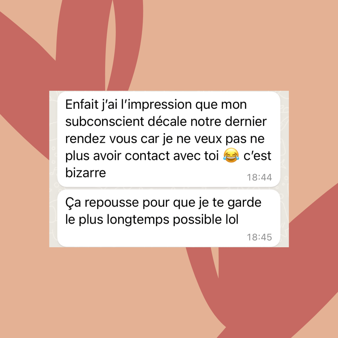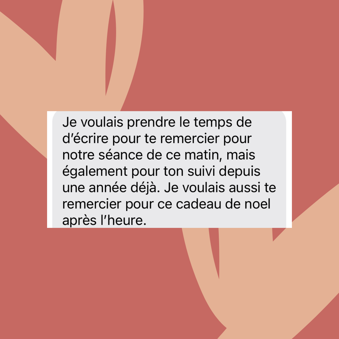 Tout notre travail est confidentiel, je respecte le secret professionnel. Tu es libre d'en parler à qui tu veux mais de mon côté, rien ne sera dévoilé sur toi et sur notre travail. Des témoignages te seront demandés et partagés avec ton accord. Tout reste anonyme !