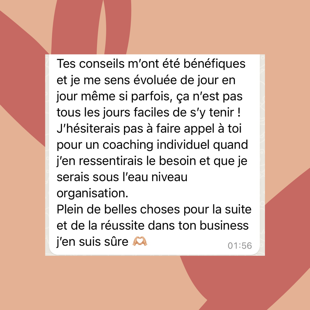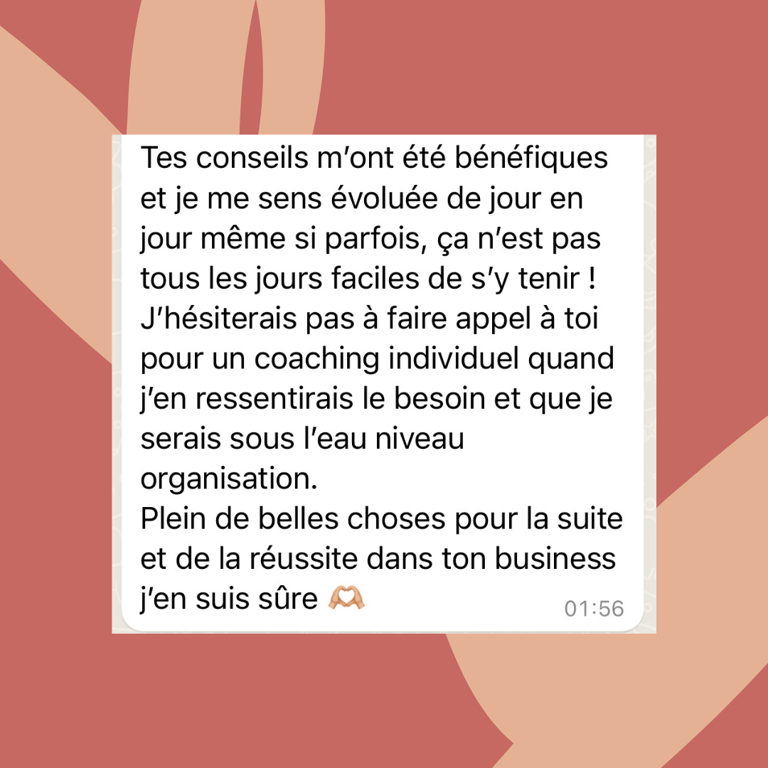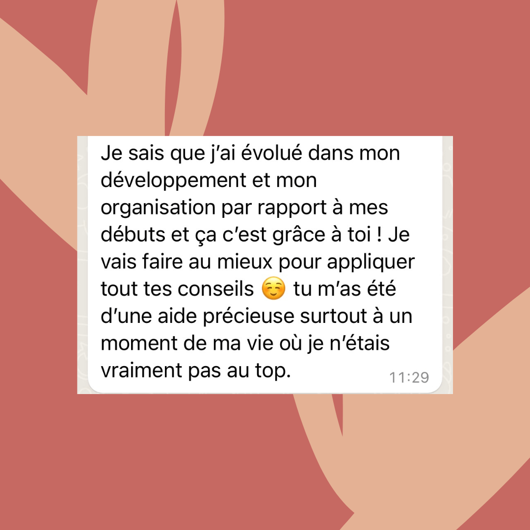Je suis aussi passée par là et c'est exactement pour ça que cet accompagnement est utile pour toi ! Tu vas découvrir des méthodes et des stratégies que tu n'as jamais vu ailleurs. De plus, c'est un accompagnement avec des coachings et un suivi constant donc je serais tout le temps là pour toi et pour te guider. Tout est personnalisé et adapté à toi donc pas de panique ! On ne passera pas de temps à re faire ce que tu as déjà fait car ça n'a pas marché au contraire, on va te créer tes propres méthodes pour que tu débloques enfin la situation !
