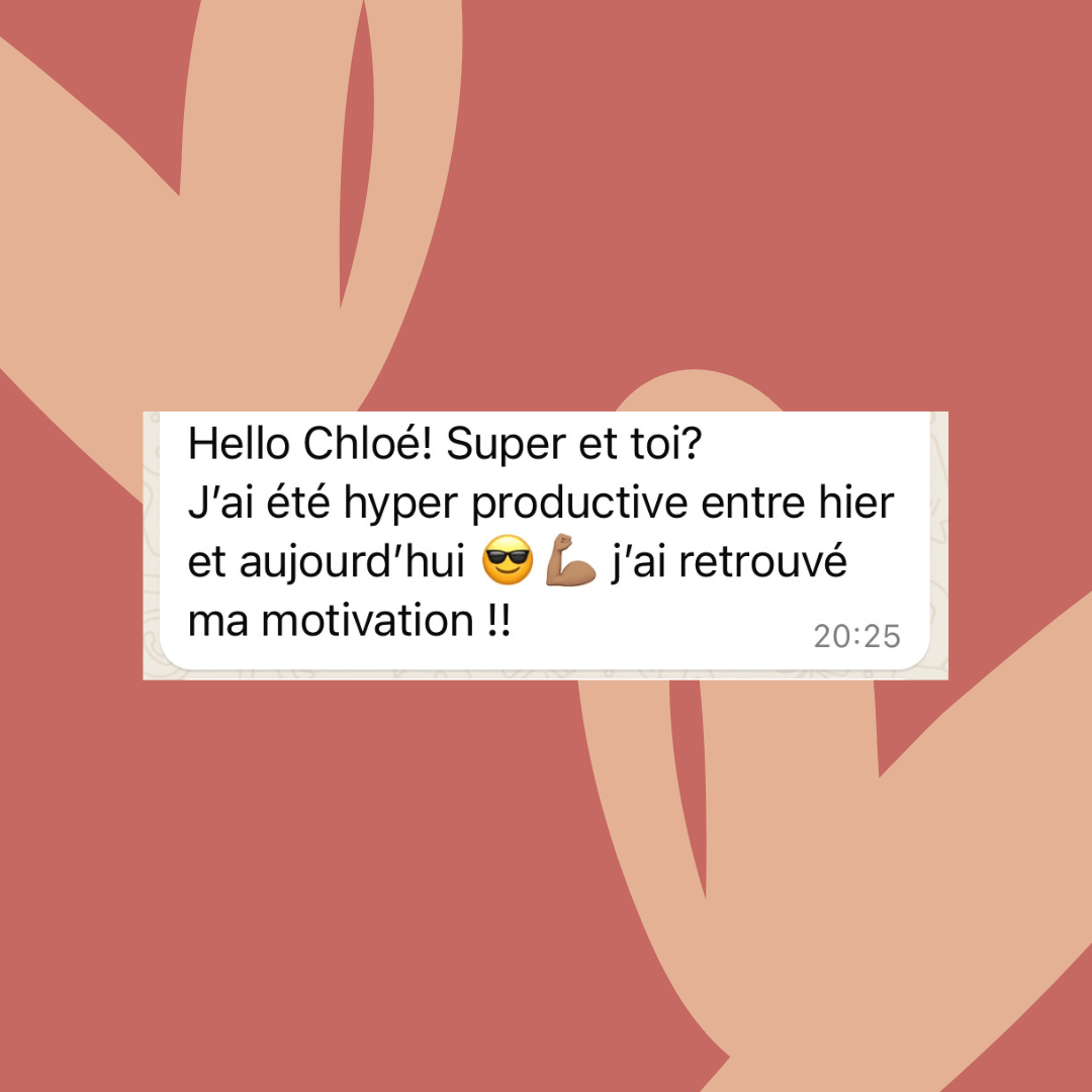 Pour que tu ne galères pas autant que moi, mon rôle est maintenant de t'aider à te débarrasser de ta procrastination, à trouver une très bonne organisation, à adopter un mode de vie sain et efficace afin que tu aies la vie saine et sereine de tes rêves en développant à la fois ton business et ta vie perso !